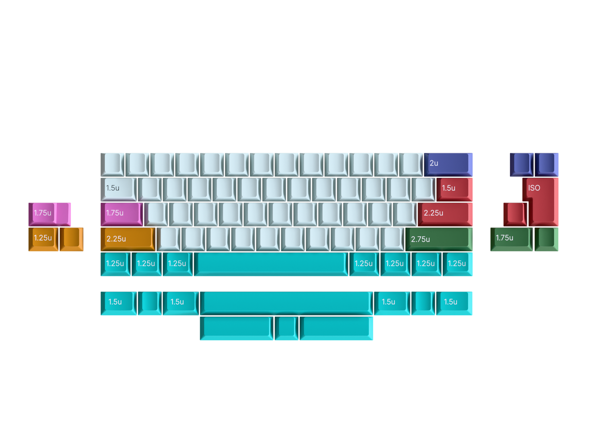 Solderable (non-wireless):Full/stepped caps lock, full/split backspace, full/split right shift, ANSI/ISO, 6.25u, 7u & split space bottom row support.