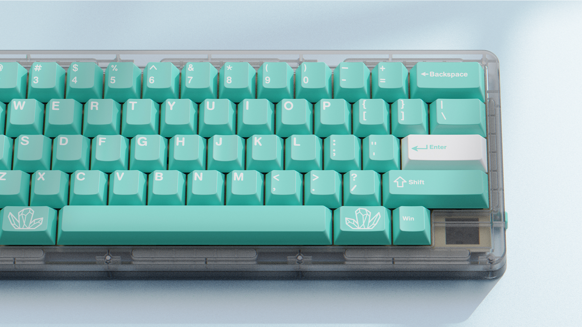 A Note from PuNkShoO: Heyo! I'm PuNkShoO, designer of the Cream Soda, Root Beer Float, Melody, Runner, and Summertime switches. When Whysoda first presented the concept of Akuamarin to me it really struck a cord. While we've had similar colorways nothing has really stuck out to me like this particular color and the vibe behind it. If you've followed my other switches you know I am all about the vibe. With Akuamarin I wanted to capture some commonalities between my previous designs and a slightly different element utilizing a dustproof stem.
