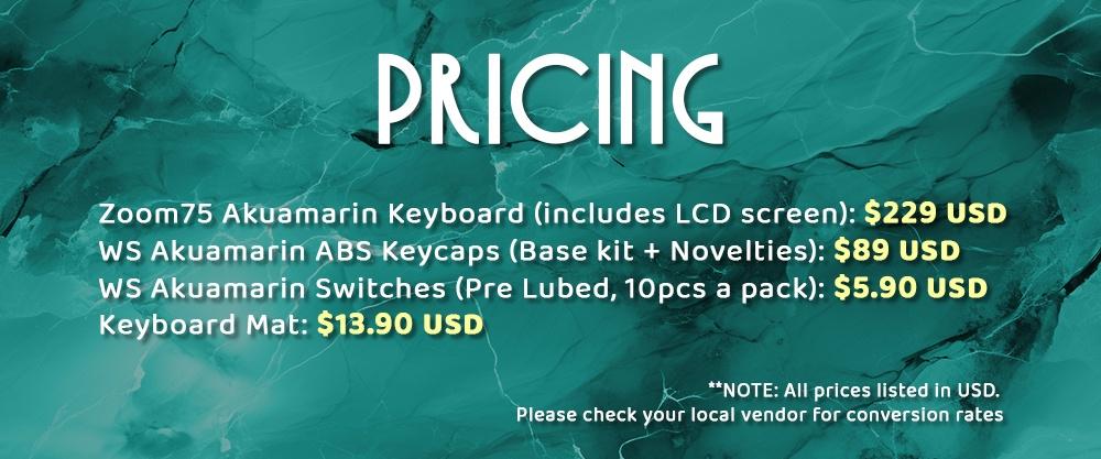 Top case: Polycarbonate Bottom case: CNC Alu External weight : e-White Backplate : Glass Gradient Screen Module x 1 Tri-mode Flex Cut/Non-Flex Cut Hotswap RGB PCB x 1 Daughterboard+JST cable x 1 Flexible Flat Cable x 2 Alu plate (Colored) x 1 Gasket Sleeves(White) x 1 Set of WS Stabilizers V3.1 Li-ion battery x 2 Coiled USB-C cable x 1 Poron Dampener kit Silicone keyboard feet x 4 2.4G USB Receiver Screws and other installation tools and accessories Storage case x 1 *Not include Internal Stainless Steel Weight (Need to buy separately)