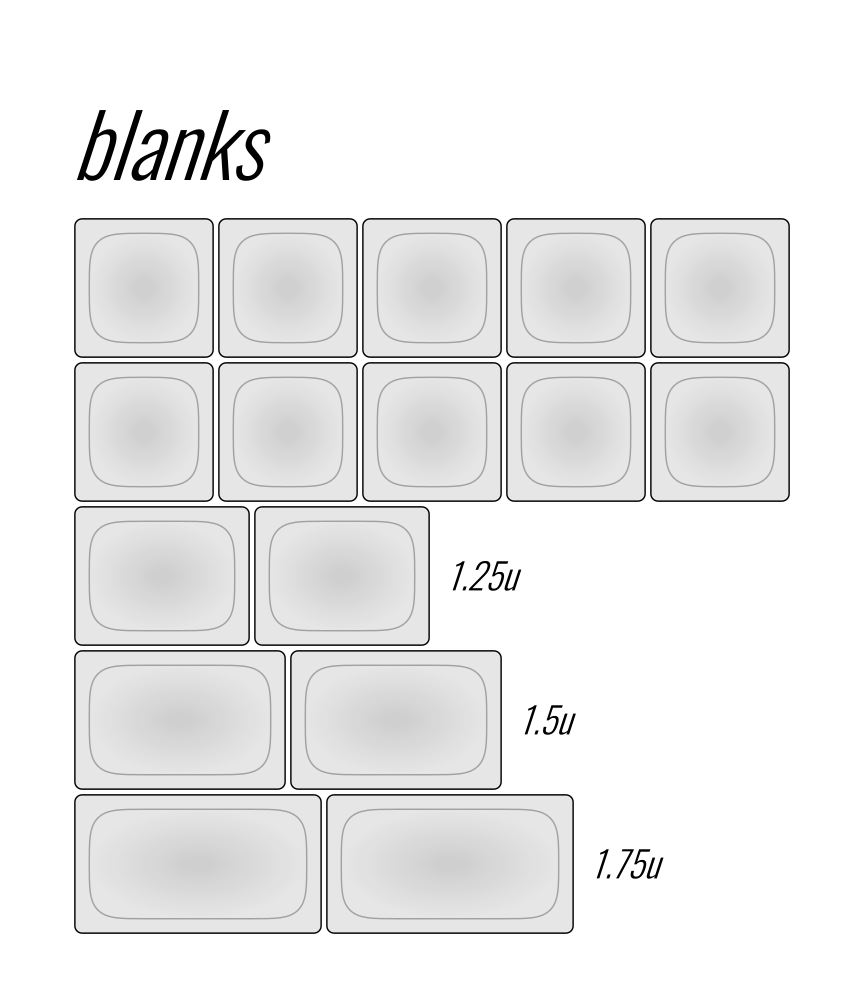 (Chinese ¥) Base Alphas45416045265Katakana Alphas47436347277Base Text Mods45416045265Base Icon Mods45416045265Accents35334735205Numpad30284230177Compatibility35344735206Spacebars1515211588Homing 871184640%35344735206Ortho45446045265Ergodox46456246270UK 109151059International 42415742248Novelties25243425146Blanks1212171270