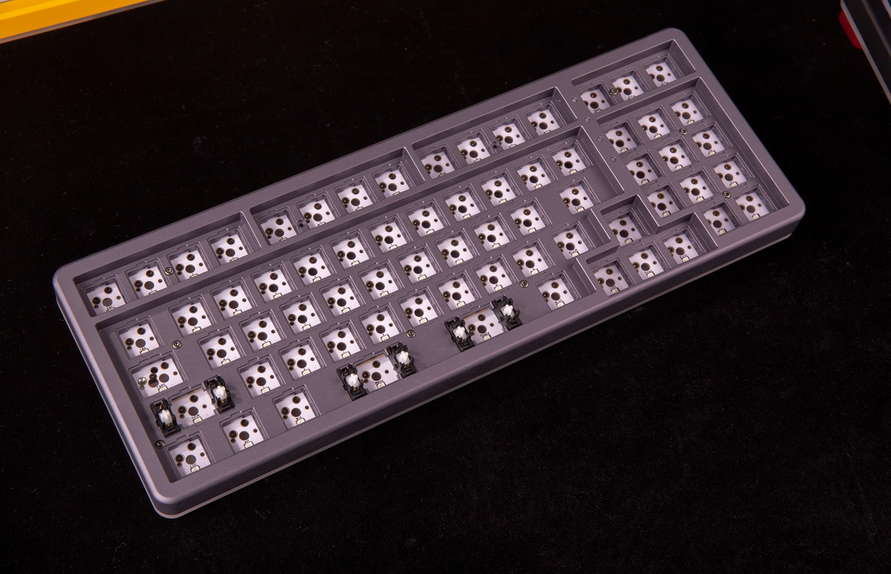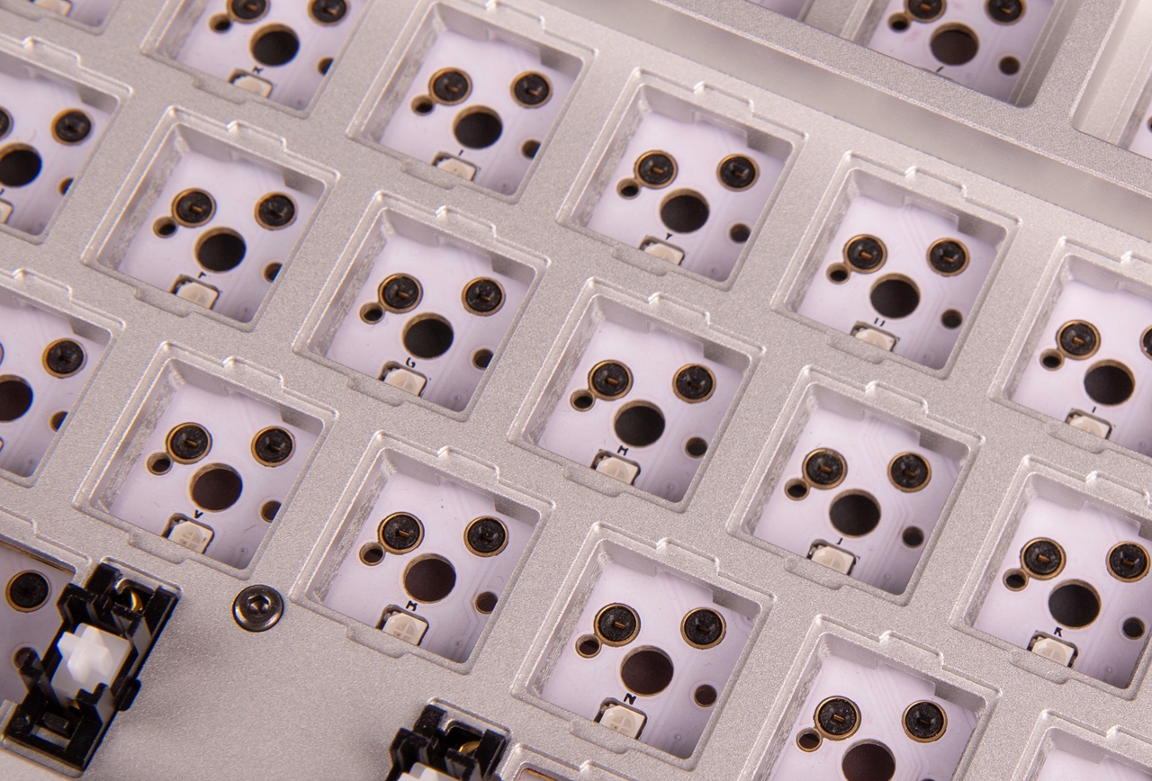 The sunken design makes the hot-swap switches more stable, and increaces the hot-swap sockets' lifespan.The redesigned integrated plate covers the four corners of switches including the below both bevel sides. Such a masterly design costs a lot of processing time.