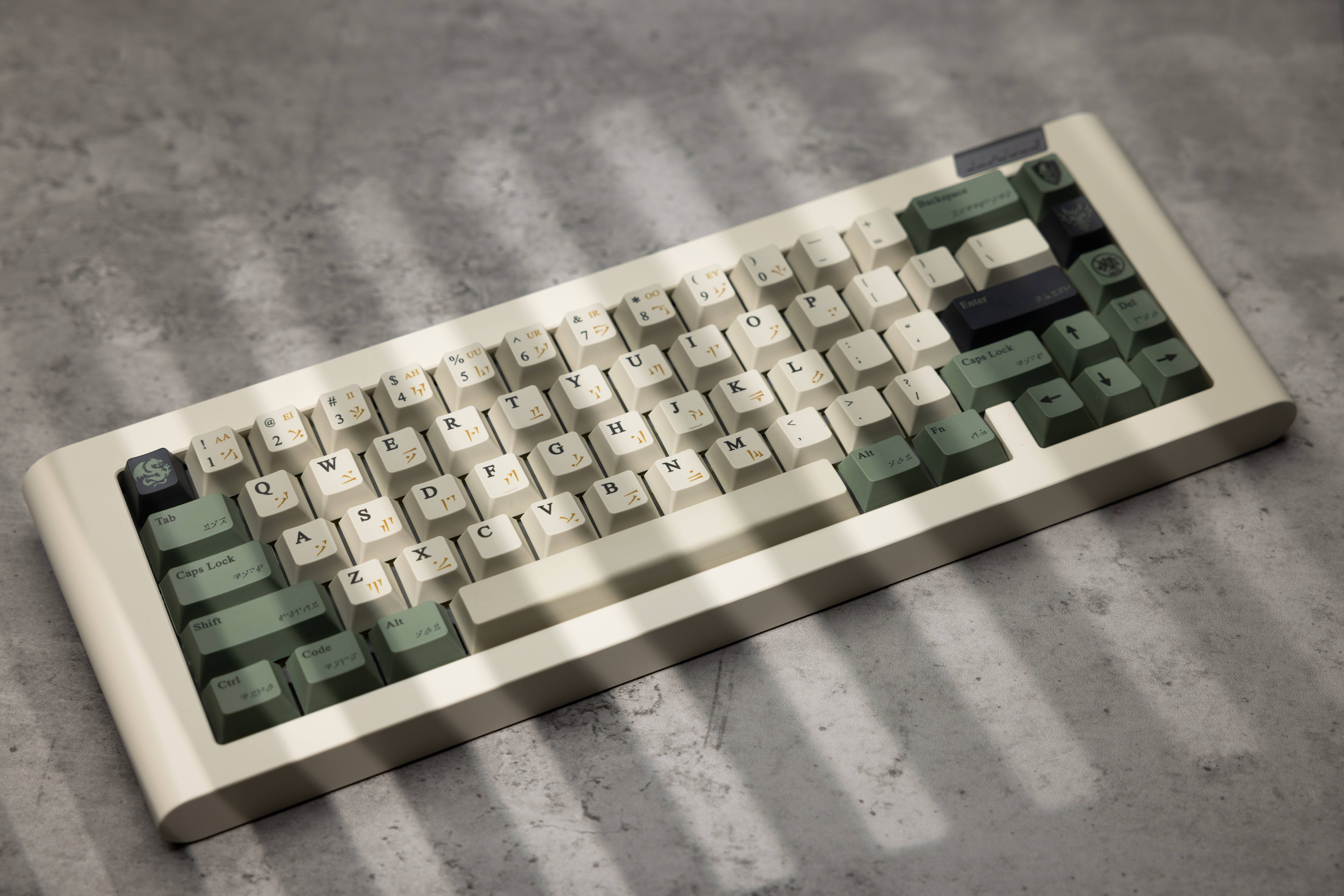 The font: This time I used serif font as the font of Latin characters, and matched it with dragon characters. I used dark gold to show the ancient and mysterious characters of dragon characters. I believe this is also the first set of keycap design with complete dragon language characters you own, you can try to learn a few words of dragon language magic! Ha ha ha ha!